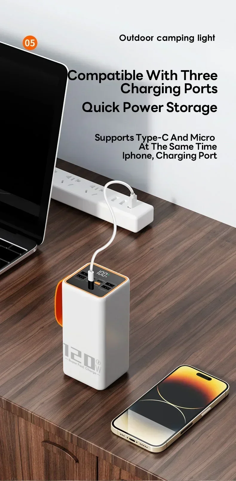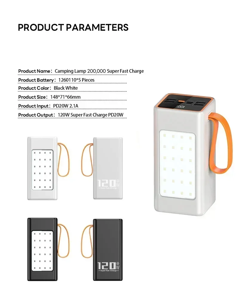 Cargador portátil de 200.000 mAh con carga rápida bidireccional y 120 W.